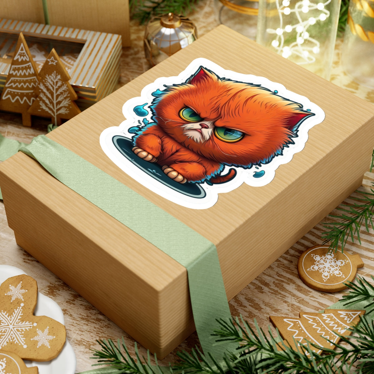 Kiss-Cut Sticker of cute funny angry anime cat kitten for your collection